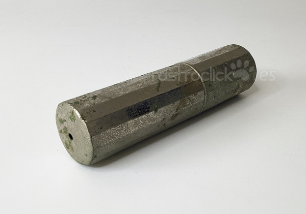 Tiene claros signos del paso del tiempo, pero limpiando bien el metal puede quedar como nuevo. Tiene una pequeña abolladura en un extremo.
