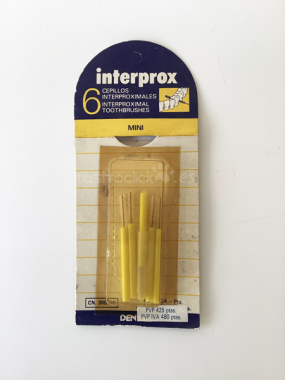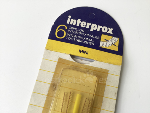 Antiguo blíster de cepillos interproximales de la marca INTERPROX Mini. De principios de los años 90. Made in Sweden by: EKULF (marca sueca aún activa). Distribuido por DENTAID S.A., empresa española fundada en 1980.