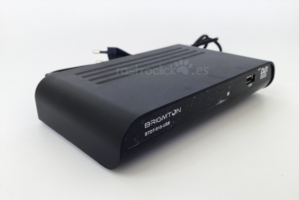 Sintonizador TDT Brigmton BTDT-915-USB. Está en muy buen estado, todavía tiene puesto el plástico protector en el frontal. No incluye el mano a distancia, (se puede encontrar por internet a 14,95€ en: mandos.tv). Sin manual ni caja original.