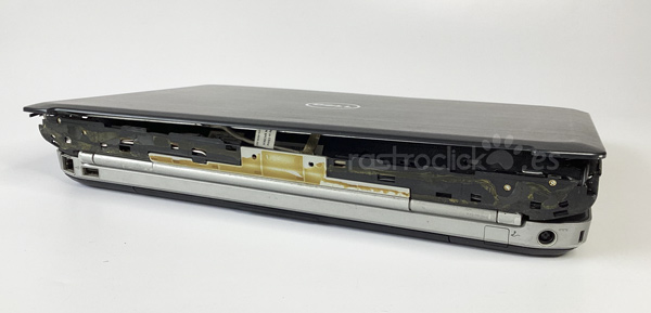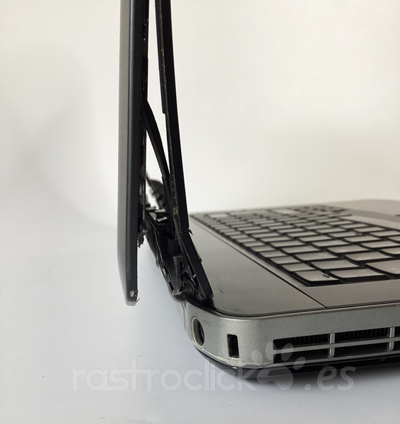 Tiene la bisagra de la pantalla rota. Pero la pantalla no está rota, está bien. No se si la batería funciona todavía, no lo he podido comprobar por no tener el cargador.
