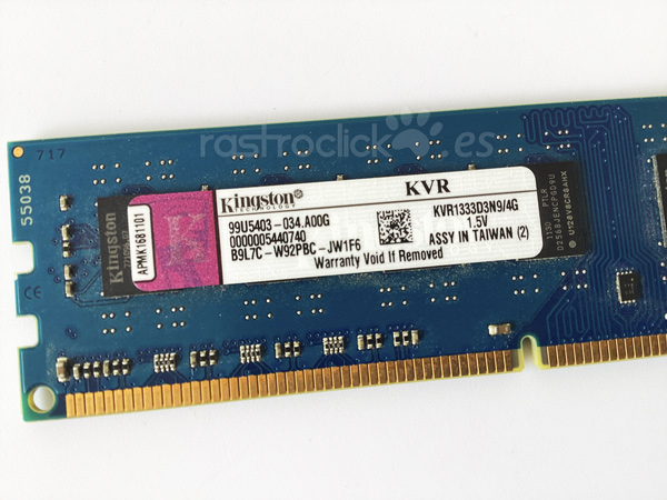 Módulo de memoria RAM. Marca Kingston. Modelo: KVR1333D3N9/4G. Como nuevo, funcionando.