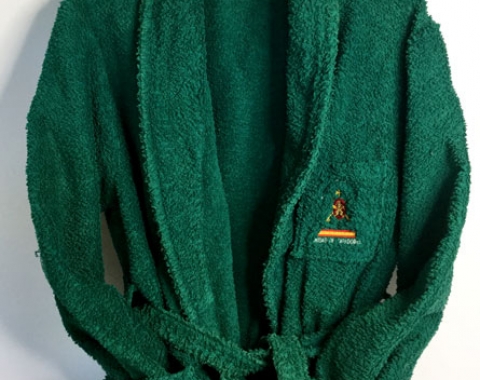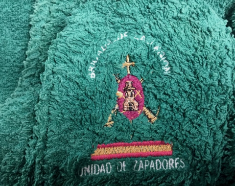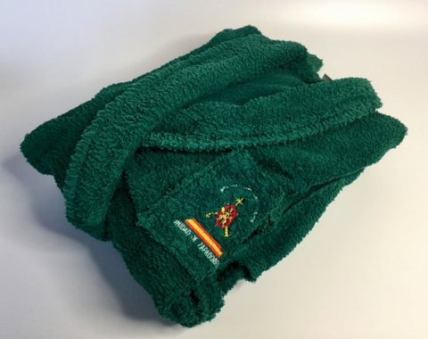 Albornoz de la Brigada de la Legión. Unidad de Zapadores. Es de los años 90. Tiene el emblema bordado. Marca: ATRIVM by JMA. Alterco S.A. Tiene signos de uso y de desgaste. Podría ser una talla M. Medidas de axila a axila 62cm. Manga 57cm. Largo 115cm.