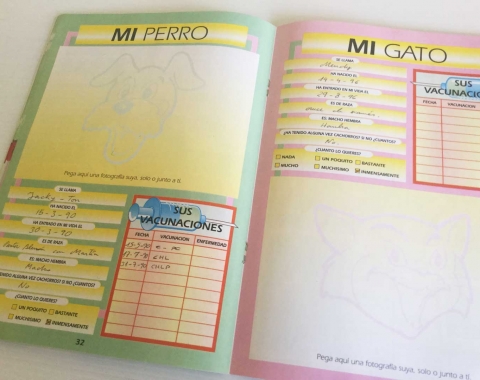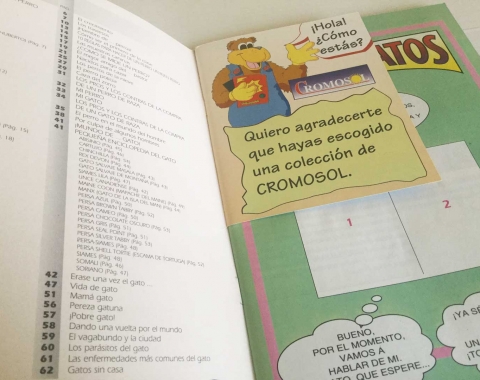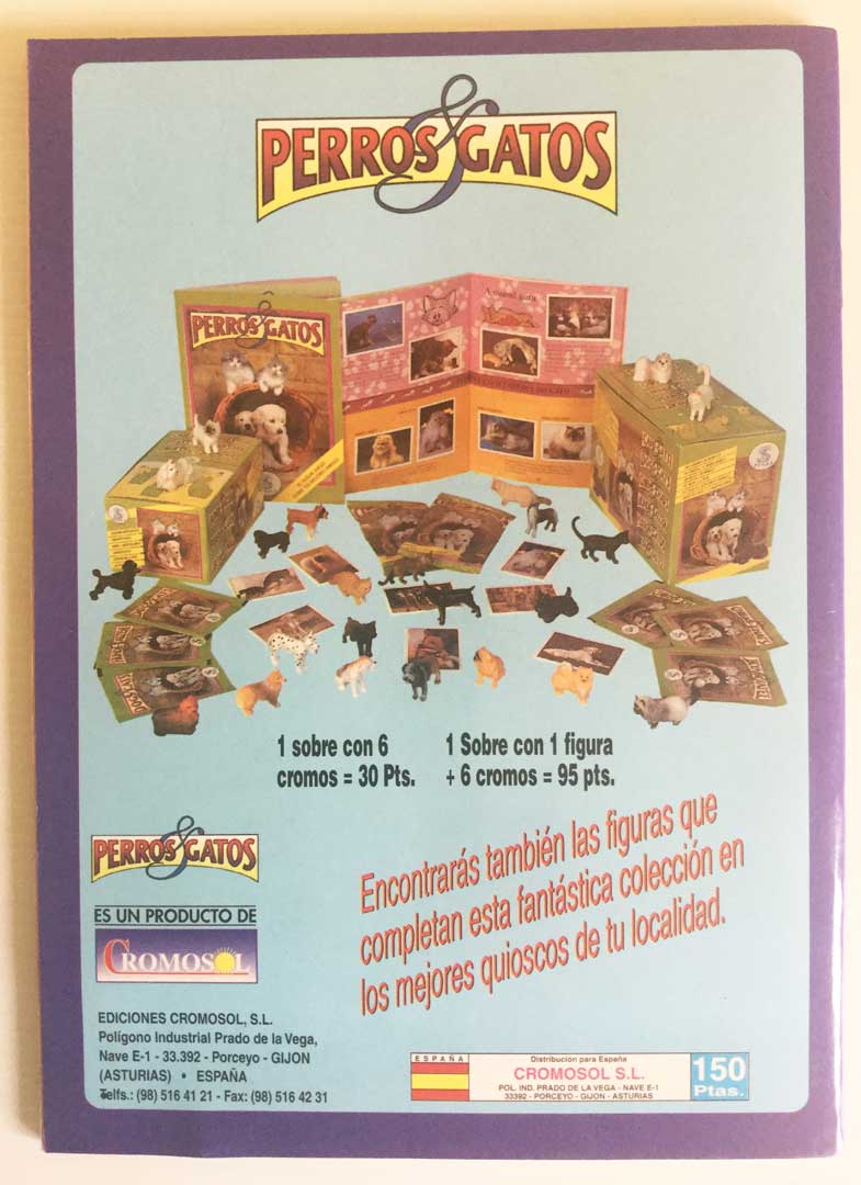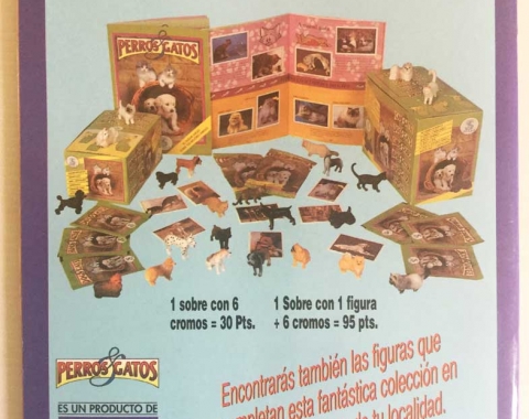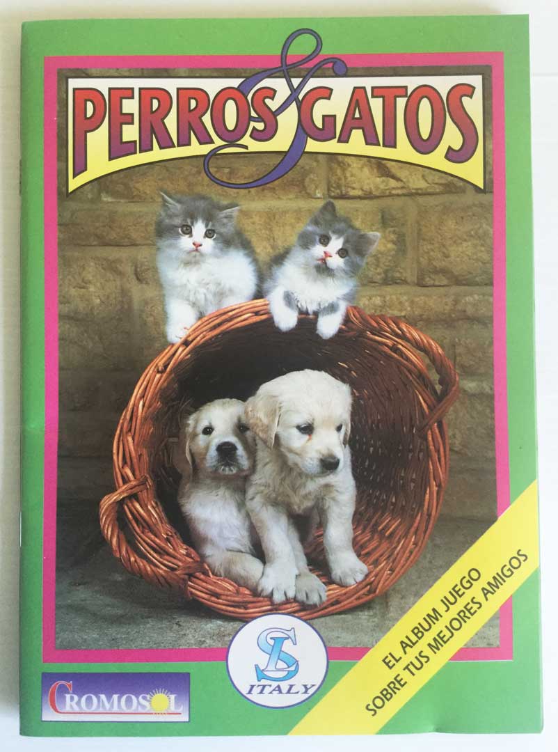 Álbum Perros & Gatos del año 1993, de Cromosol. Incompleto, con 95 cromos pegados. En muy buen estado, como nuevo.