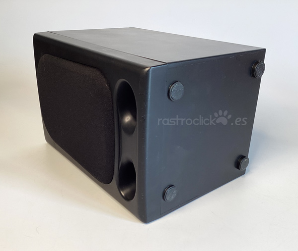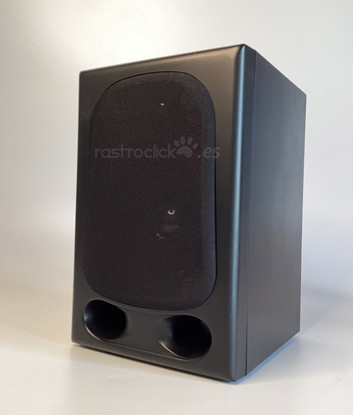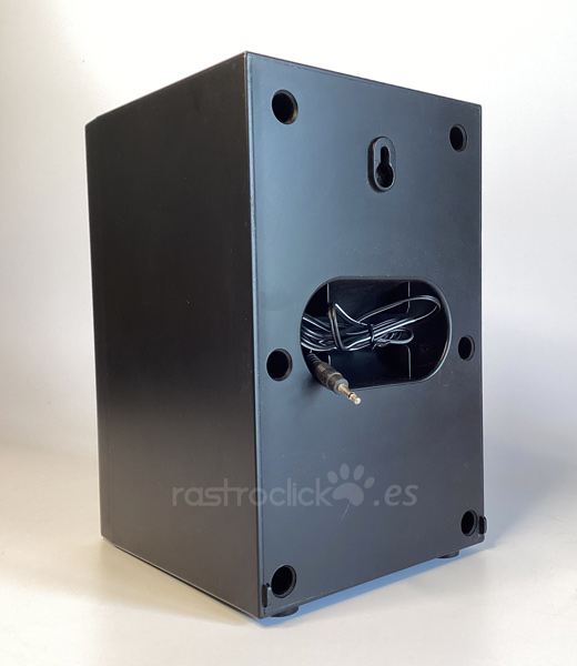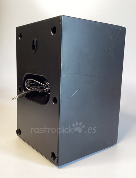 Altavoz genérico, sin marca. Tiene conexión Jack, con un cable de 1,5m aproximadamente. Se desconoce qué potencia puede tener. Funciona. Se puede enchufar al PC. Sólo es una unidad. El altavoz mide 24,5cm de alto, 16cm de ancho y 17cm de profundidad. Se puede colgar en la pared.