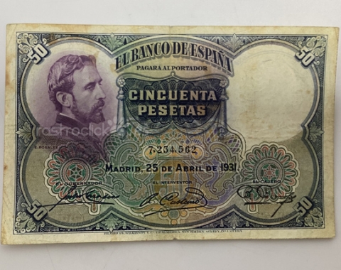 Billete de 50 pesetas 1931 Sin Serie 7,234,562 Eduardo Rosales