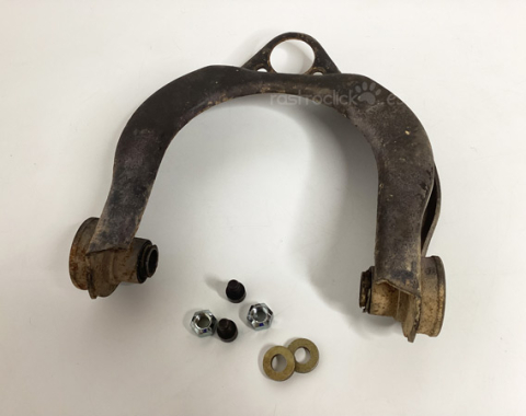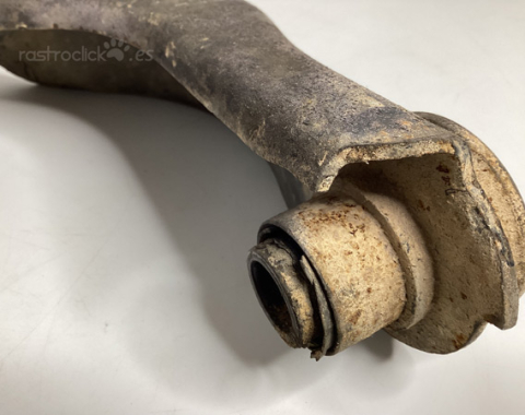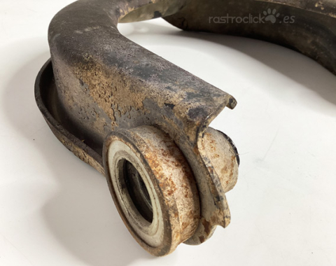 Brazo delantero superior con silenblocks. Referencia del original: 251407047B. Es de segunda mano, está desgastado, tal cual se aprecia en las fotos. Se utilizó en una VW T3 Diésel del año 1982. La caja de la foto pertenece al nuevo que se compró para sustituirlo.