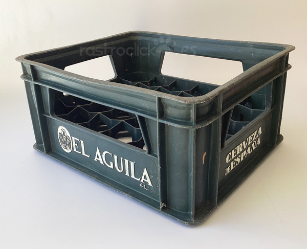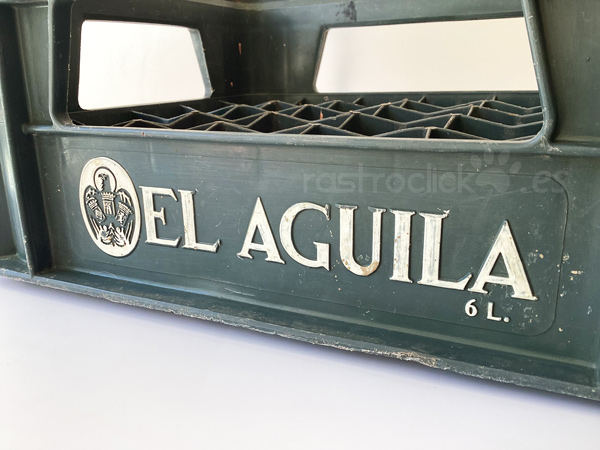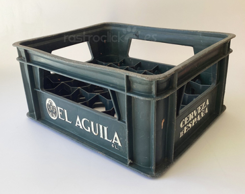 Caja vacía que contenía 30 botellines de cerveza El Águila de 20cl. Es de marzo de 1979. Cerveza El Águila. Cerveza de España. La caja está fabricada por Holanplast.