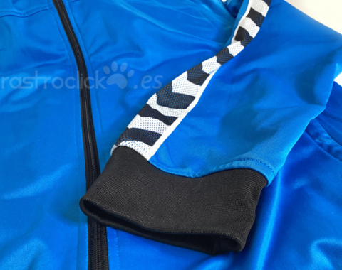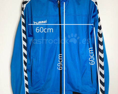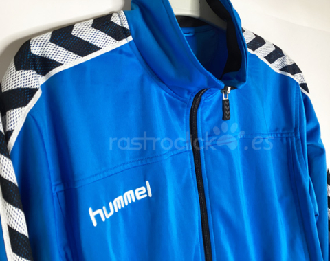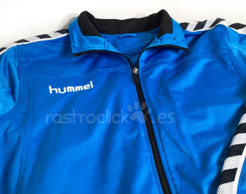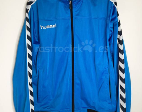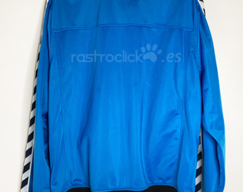 Chaqueta de chandal de la marca Hummel. Vintage de finales de los 90. Puede ser una talla XL, se borró las letras donde ponía la talla. Las medidas son: Longitud del cuello hasta abajo: 69cm. Longitud de axila a axila: 60cm. Longitud de la manga desde la axila: 60cm. Composición 100% Poliéster. Está en muy buen estado.