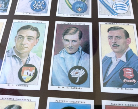 Colección 25 cromos de jugadores de Cricket. Salían en el tabaco inglés Wills. Conocido por el nombre: CIGARETTES WILLS´S – W.D. & H.O. WILLS. La colección completa constaba de 50 cromos. Están enmarcados con cristal y marco de madera. Pertenece al año 1938. Las medidas del cuadro son: 57,5x28,5cm y las medidas de cada cromo son: 6,5x3,5cm. Los jugadores que aparecen son: