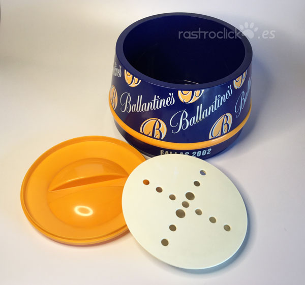 Antigua cubitera Ballantines. Se utilizó para las Fallas de Valencia de 2002. En muy buen estado, sin apenas signos de uso.