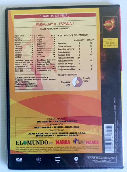 DVD Sudáfrica 2010 España VS Paraguay Quinto Partido EL Mundo MARCA