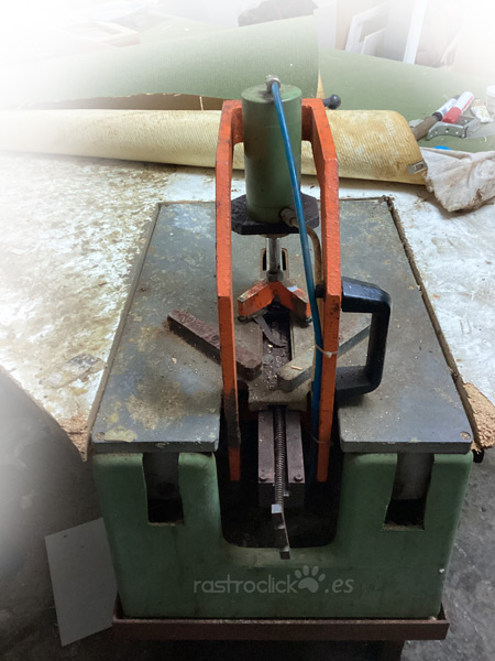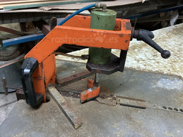 Ensambladora o grapadora para marcos de cuadros. Funciona con aire comprimido.