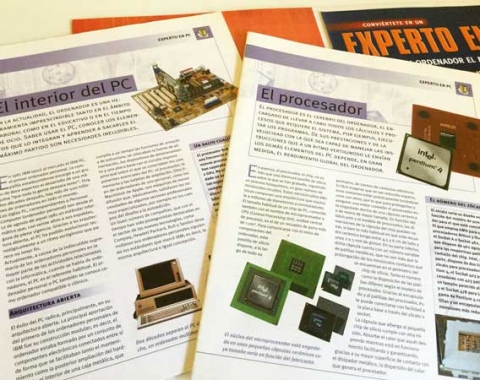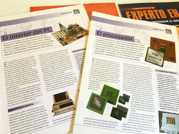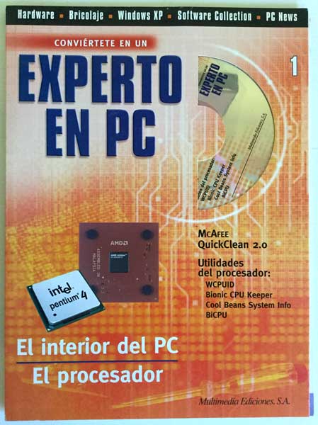 Fascículos de “Conviértete en un experto en PC”. Multimedia Ediciones S.A. Carpeta que contiene un CD + Fascículo 1: El interior del PC + Fascículo 2: El procesador. Año 2002. En buen estado.