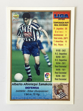 Ficha número 155, Alberto Albistegui Zamakola, defensa de la Real Sociedad. De la colección Las Fichas de la Liga 97-98 de Mundicromo. Como nuevo.