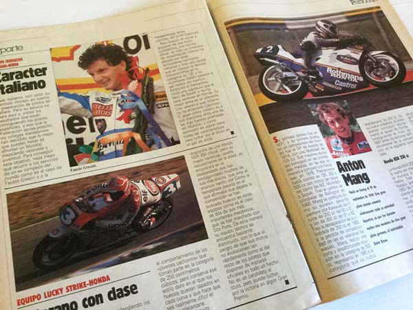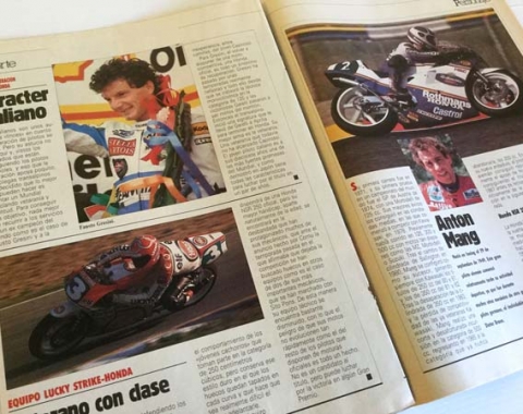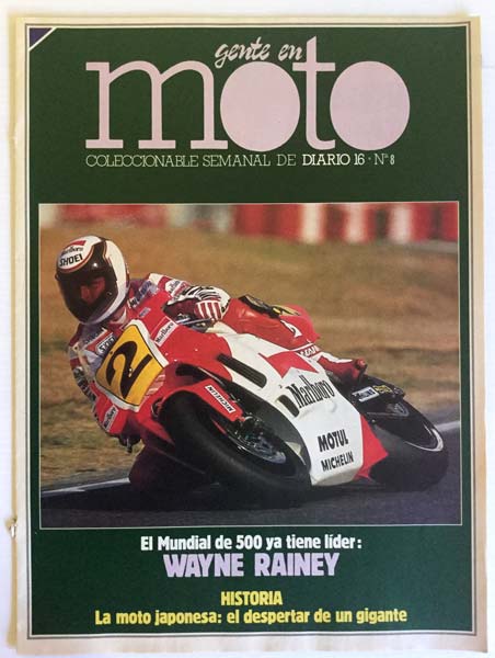 Gente en moto, un coleccionable semanal de Diario 16, número 8. El mundial de 500 ya tiene líder: Wayne Rainey. En muy buen estado.