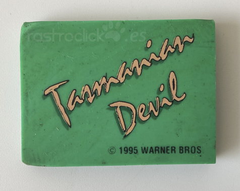 Goma de borrar Tazmanian Devil. Warner Bros de 1995. Color verde. Mide 4x3 cm. Con signos de uso y del paso del tiempo.