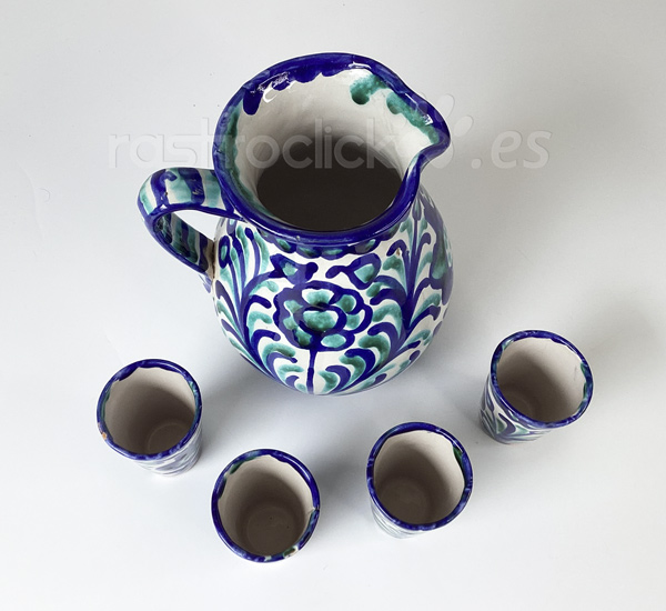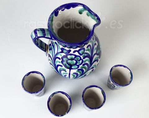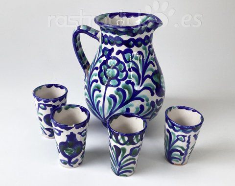 Jarra y vasos de cerámica Fajalauza Granada