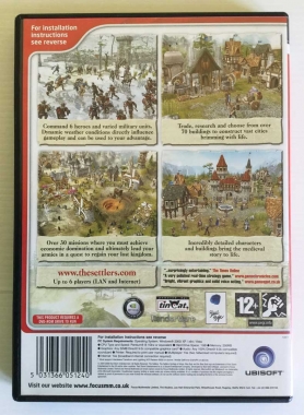 Juego para PC The Settlers Heritage of Kings, en Inglés. CodeGame Kids de Ubisoft. Año 2005. En buen estado, falta el manual de usuario. Es un juego de estrategia de construcción de mundo con visuales totalmente rendereados en 3D y un adictivo modo de juego. Los jugadores pueden ir directamente a un mundo medieval que ofrece una mezcla única de RTS y juego de simulación. Se puede crear una comunidad totalmente funcional, se pueden ir descubriendo avances tecnológicos y con ellos repeler a las fuerzas del enemigo.