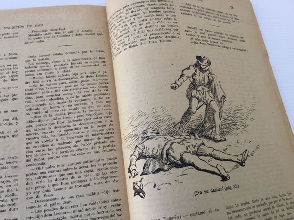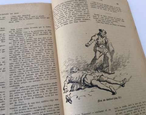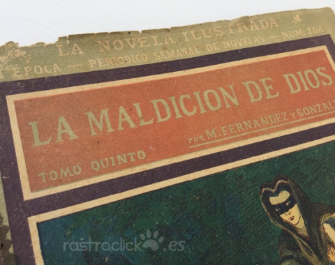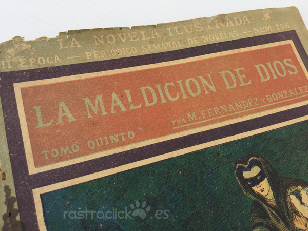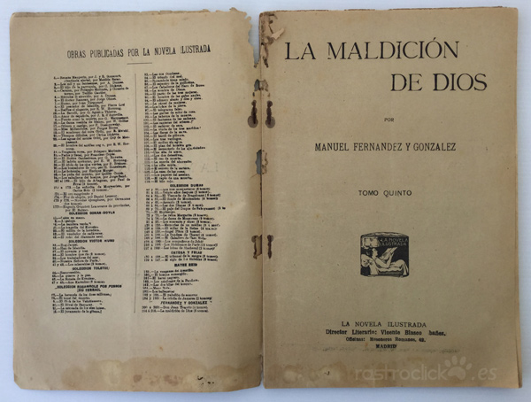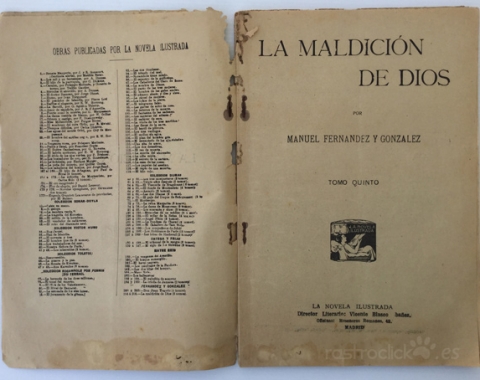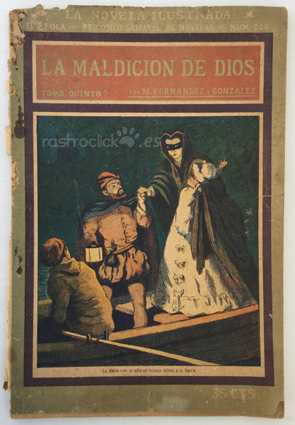 Número 208 del tomo quinto de la colección de La novela ilustrada. Títulado La maldición de Dios. II Época. Madrid años 20. Por Manuel Fernández y González. Director Literario: Vicente Blasco Ibáñez. Está bastante deteriorado por las polillas, pero no afecta a su lectura, ya que este daño está por los bordes (ver fotos).