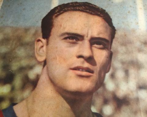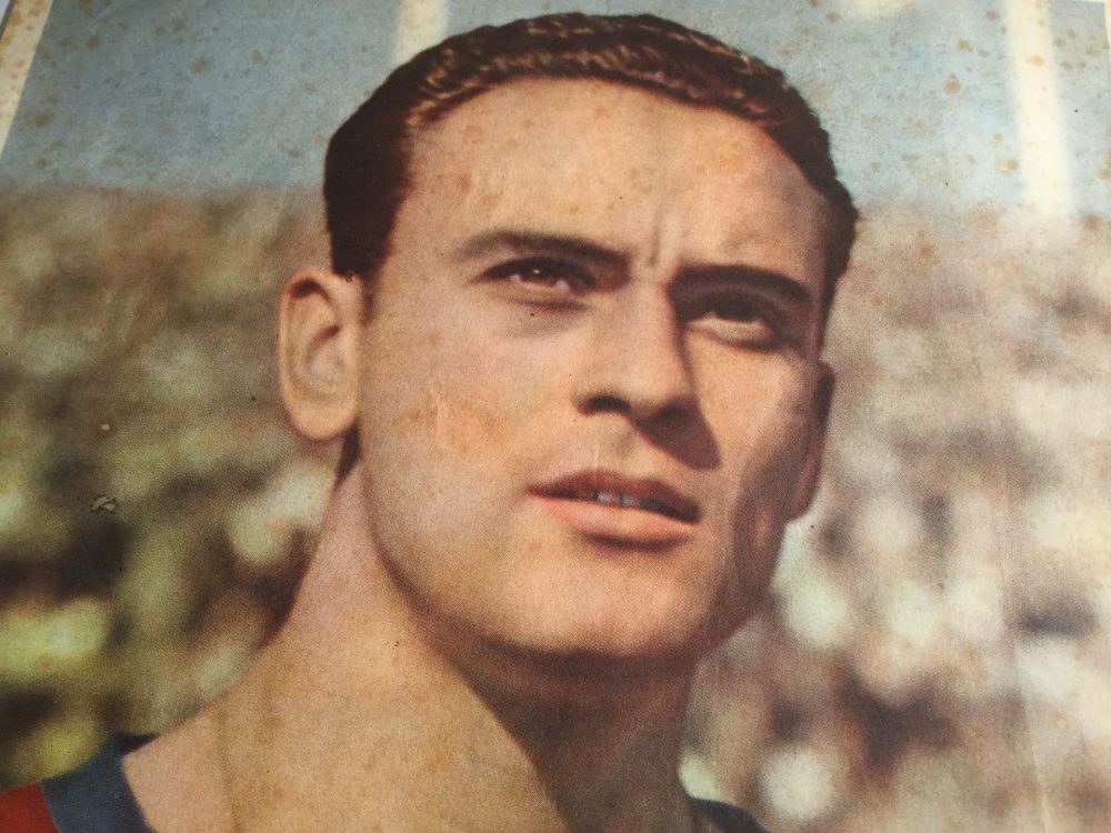 Lámina de Biosca Defensa central del C.F. Barcelona 1950