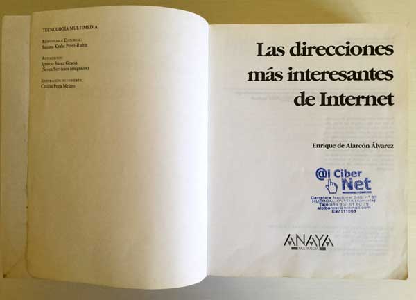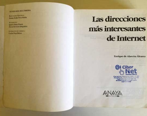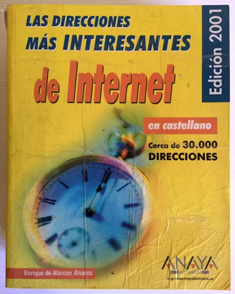 Libro de Las Direcciones más Interesantes de Internet. Por: Enrique de Alarcón Álvarez. Editorial Anaya. Un libro de 1180 páginas con cerca de 30.000 direcciones web. Año 2001. Una guía esencial para los navegantes. Perteneció a un Ciber. El libro tiene signos de uso, el canto algo pelado, pero está en buen estado. Se le puso un forro transparente a las tapas para su mejor conservación.