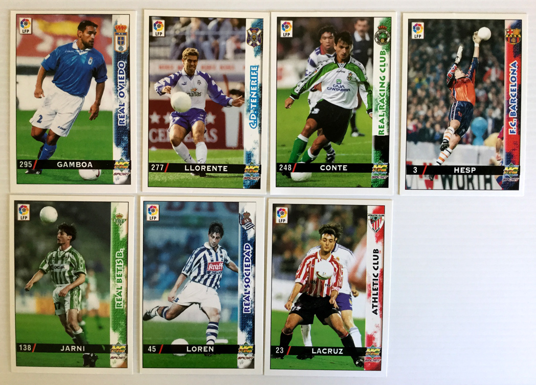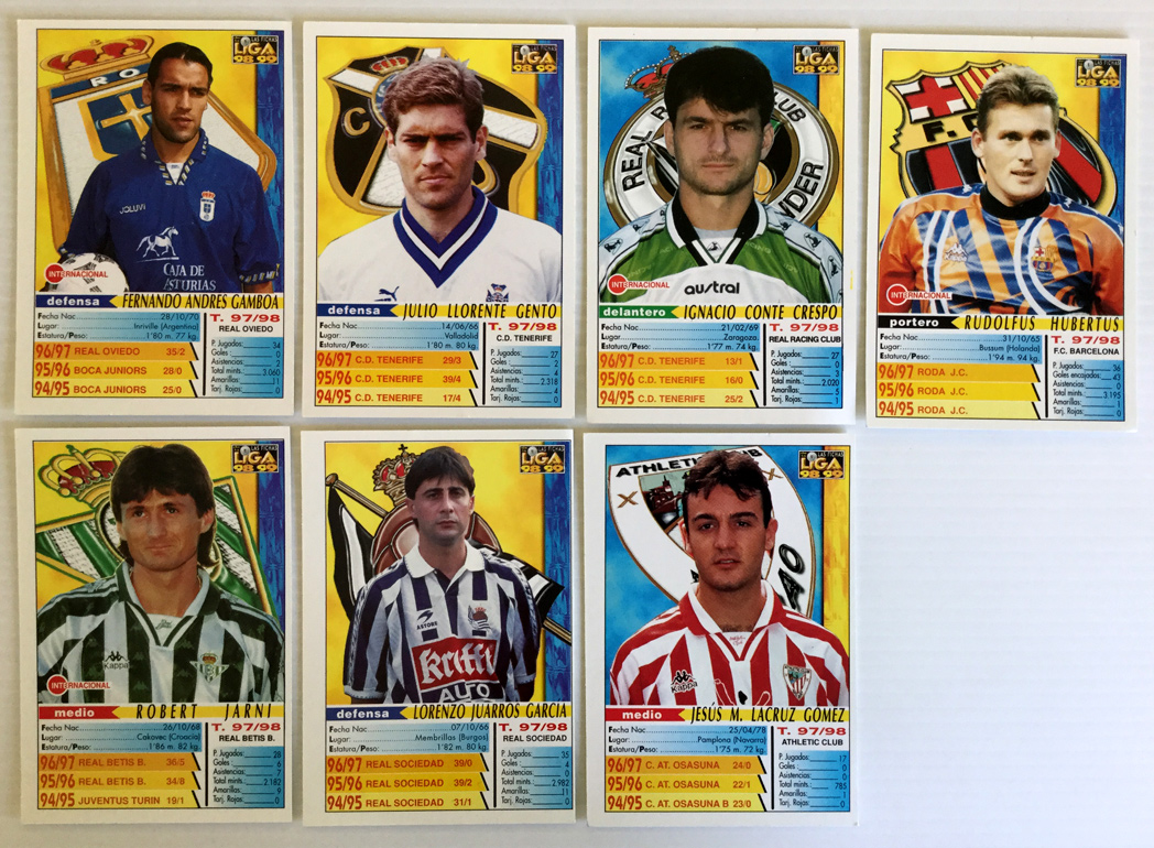 Lote 7 fichas diferentes de la Liga de fútbol, temporada 98/99. De Mundi Cromo. Bien cuidado, bien conservado. Los números de las fichas son: