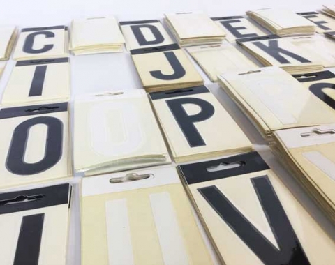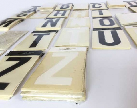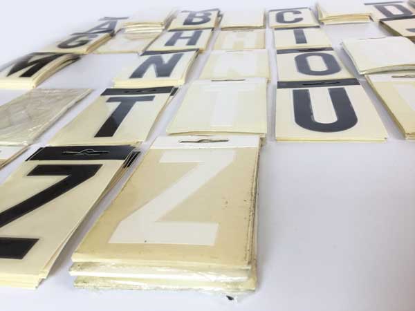 PEDIDO MÍNIMO 15 UNIDADES. A 0,40 € cada letra. Consultad por mensaje el stock disponible. Letrayón. Letras blancas y negras de plástico autoadhesivas, aplicables a todas las superficies. Miden 8cm de alto. Estas letras tienen ya unos 30 años. Son de principios de los 90. Se venden sueltas. Están en muy buen estado. Con algún signo del paso del tiempo.