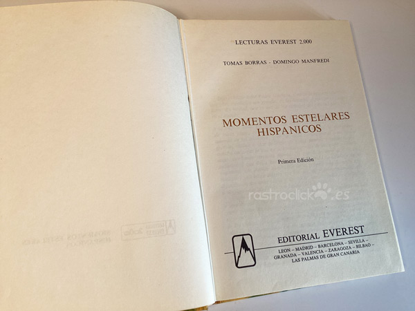 Libro de tapa dura. Momentos Estelares Hispánicos. Lecturas Everest 2000. Editorial Everest año 1975. Primera Edición. En muy buen estado.