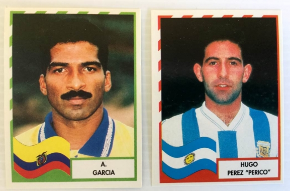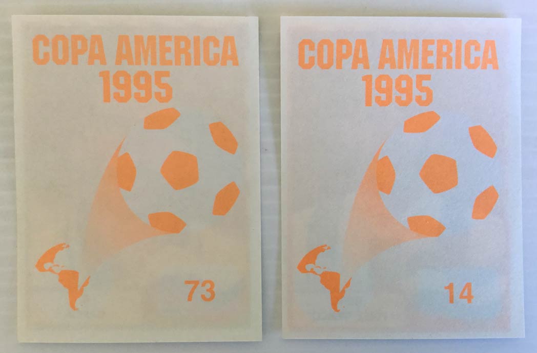 Lote de 2 cromos de la Copa de América de Mundicromo. En muy buen estado, bien conservado. Los números son: 14 y 73.