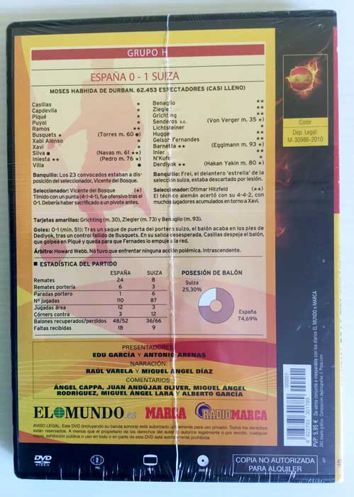 Lote 2 DVD España VS Suiza y España VS Honduras DVD 1 y 2 Sudáfrica 2010 Marca El Mundo