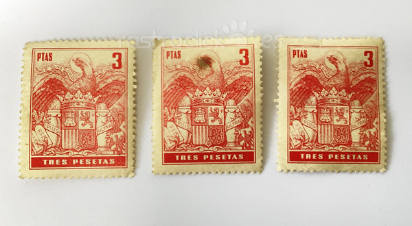 Al ser de 3 pesetas, se utilizaban para trámites administrativos o pólizas de mayor importancia económica que los de 25 céntimos o 1 peseta.