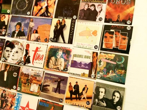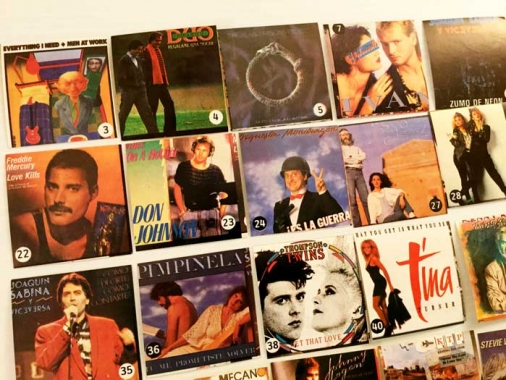 Lote de 33 cromos de discos de los años 80. Duran Duran, Bruce Springsteen, Madona, Mecano… etc. Una colección rara y curiosa. Tengo los siguientes números: