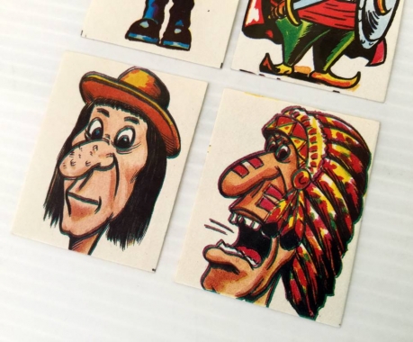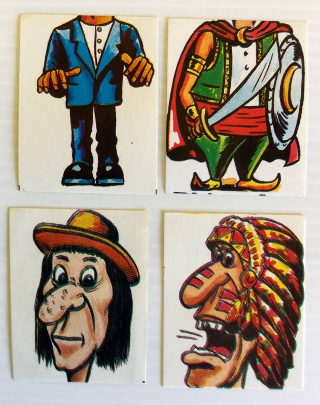 Lote de 4 cromos diferentes de Super Comix de los años 80. Cromos de personajes, divididos en dos partes, por un lado la cabeza y por otro el cuerpo, tengo 2 cabezas y 2 cuerpos. Son caricaturas de algunos personajes conocidos, como Julio César, El Quijote, Cantinflas, etc. Completando el álbum te regalaban un coche radio control en tu kiosko. Los cromos están muy bien conservados.