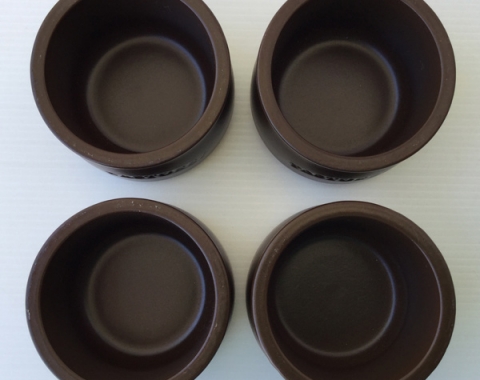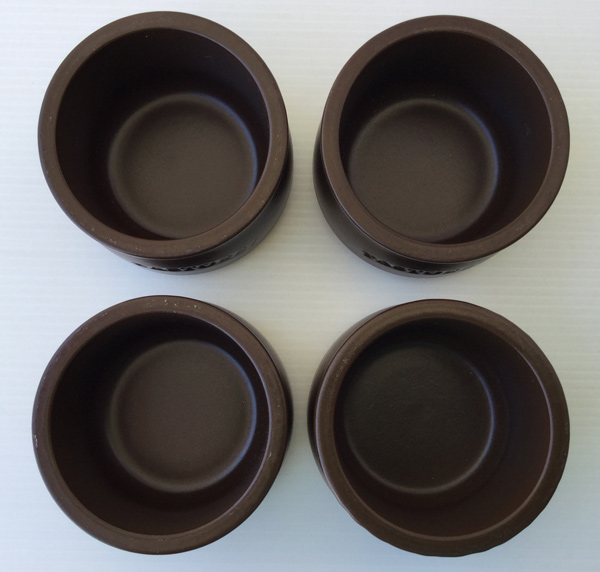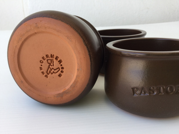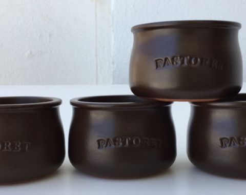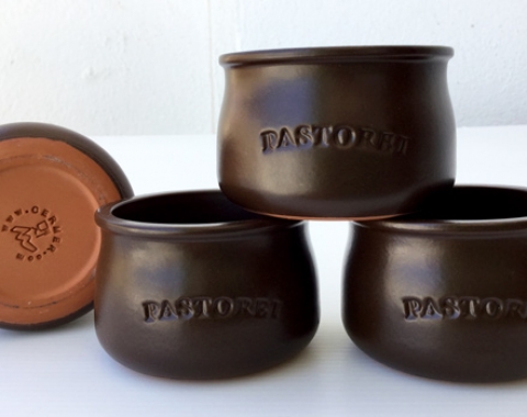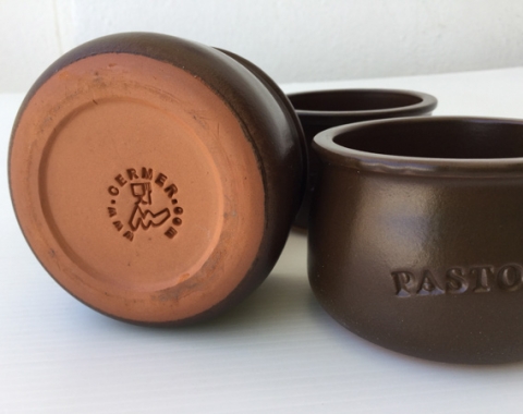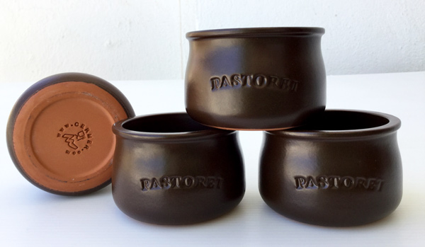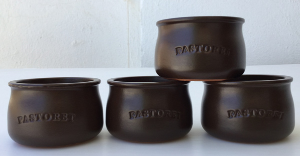 Lote 4 Tarrinas de cerámica terracota para la crema de chocolate Pastoret. La cerámica es de la marca Cermer y se hace con elementos naturales. Pertenecen a la gama de crema de chocolate ecológica. En muy buen estado.