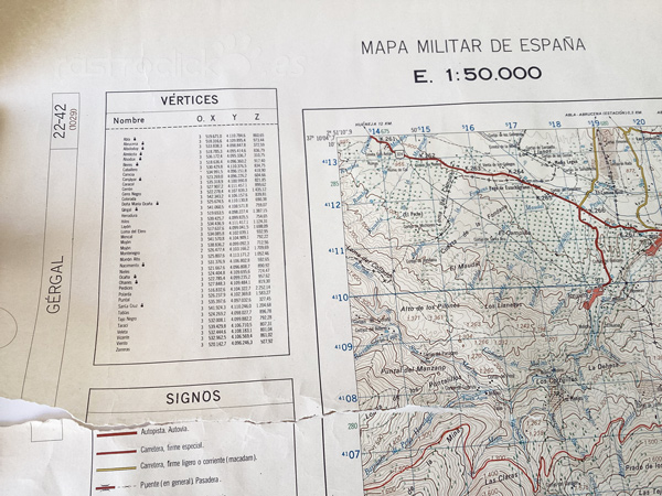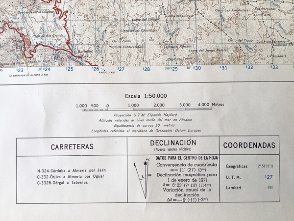 Mapa Militar de España. Gérgal. Servicio Geográfico del ejército. Escala 1:50.000. Formado y editado por el Servicio Geográfico del Ejército en el año 1971.