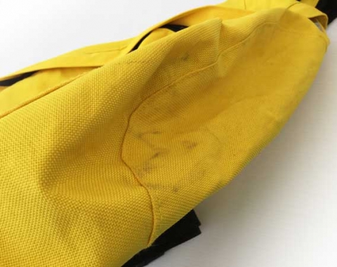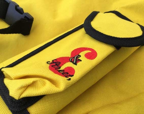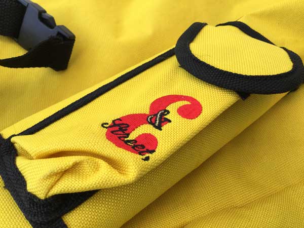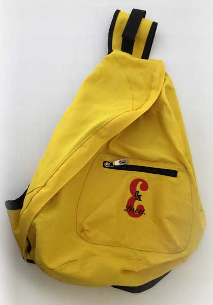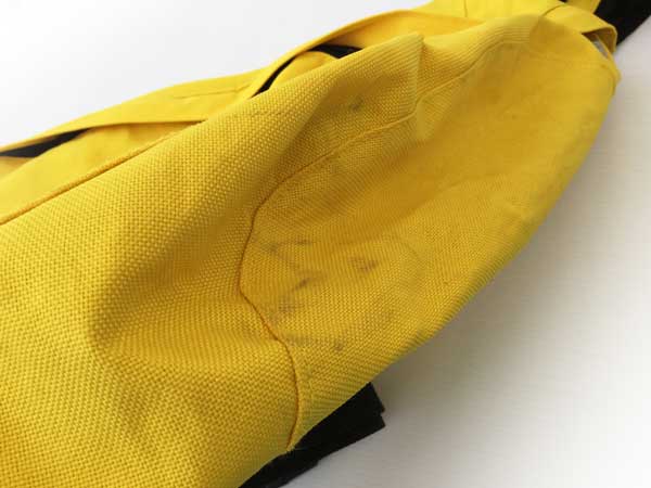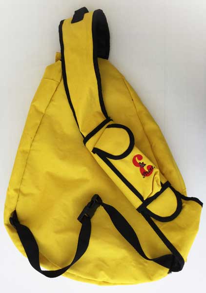 Bandolera de publicidad de la marca de whisky J&B. Es grande, mide unos 42cm de alto y unos 34cm de ancho aproximadamente. Tiene un bolsillo exterior y otro en el interior. En el asa que va al pecho tiene un departamento para llevar el móvil, al menos los móviles de antes sí entraban. El asa se puede regular con varias medidas mediante un velcro. Lleva una cinta para atarla a la cintura por si está muy cargada la bolsa. La cremallera principal es doble, pero en una de ellas se perdió la anilla, pero no es problema para abrirla y cerrarla con la otra. Un forro interior que lleva en uno de los laterales se ha descosido (ver foto). En un lateral tiene unas manchas, no muy visibles (ver foto). Por lo demás está en buen estado.