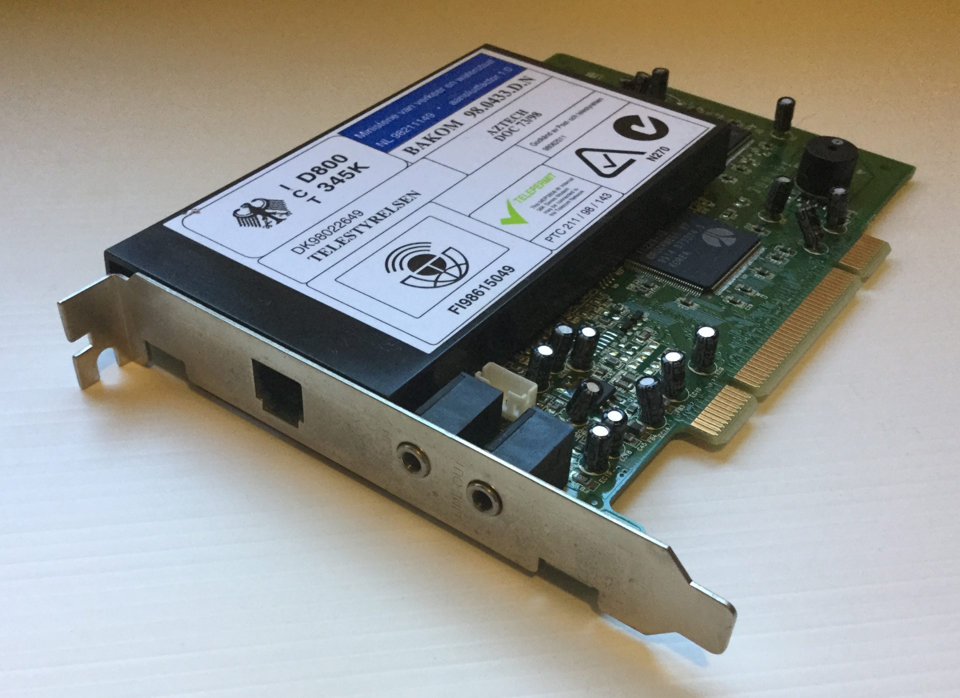 Tarjeta PCI Modem Aztech mdp3858sp de 56 K, circuito integrado Rock well 11229. Con conector RJ-11. No puedo asegurar que funcione ya que no lo he podido probar.