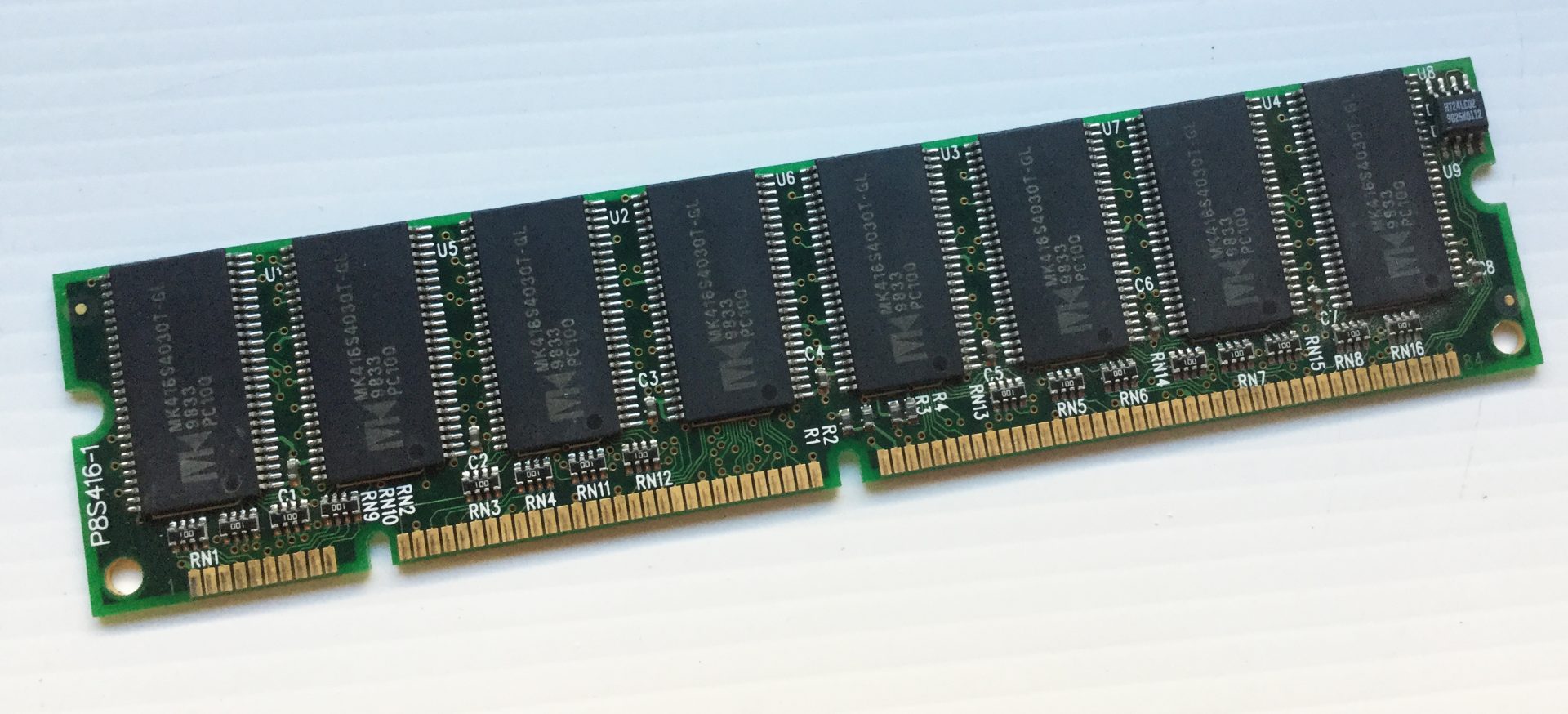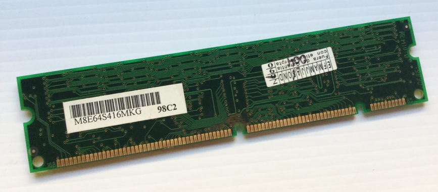 Módulo de memoria desconocido. No se ni de cuánta capacidad es ni el tipo de memoria que es, sospecho que es una PC100, pero no estoy seguro. Si alguien puede aportar información le estaré agradecido.