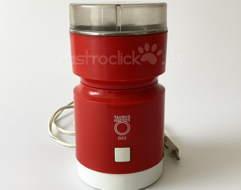 Molinillo Taurus, modelo: G70. De los años 70. Está averiado, las aspas giran muy despacio. La tapadera está en perfecto estado, 125-220V.