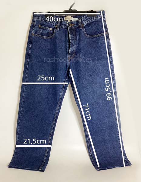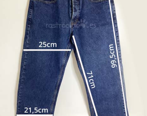 Pantalón vaquero Basic Line. Talla 44. Color azul. Talla 42. Composición: 100% algodón. Está como nuevo, muy poco uso. Cierre con botones de metal. Medidas: Longitud del camal interior 71cm. Longitud del camal exterior 99,5cm. Ancho de la cintura 40cm. Ancho camal parte superior 25cm. Ancho camal parte inferior 21,5cm.