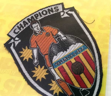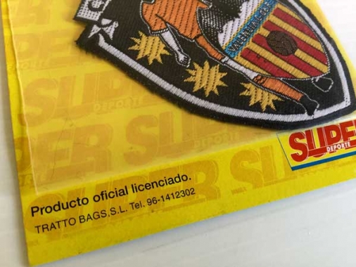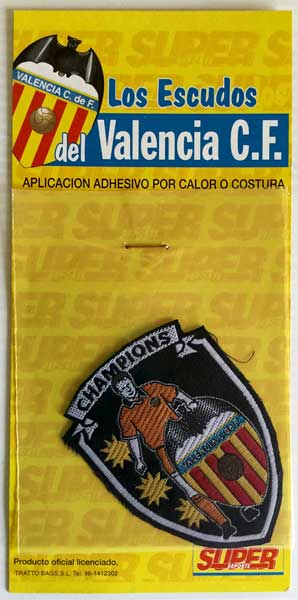Parche de tela termoadhesivo Valencia CF diseño escudo y Champions. Aplicación adhesivo por calor o con costura. Regalo del periódico Super Deporte en los años 90. Nuevo a estrenar. Producto Oficial Licenciado.