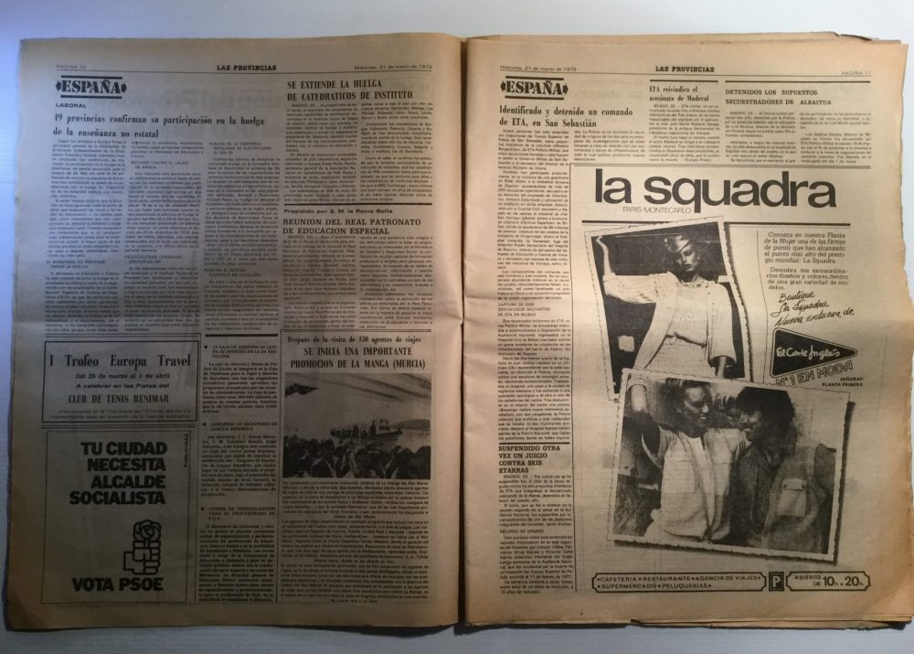 Periódico antiguo Las Provincias. Miércoles 21 de Mazo de 1979. Diario Decano de la Región Valenciana. Editado por Federico Domenech, S.A. Director: José Ombuena Antiñolo. Número 41.859. Precio 20 pesetas, sobretasa aérea 1 peseta.