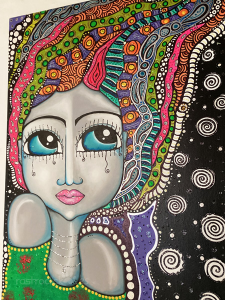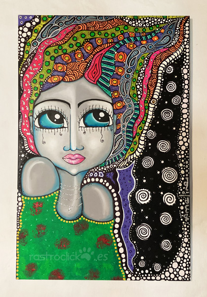 Cuadro original en acríclico de la artista argentina Melina Martín. Medidas: 61x92cm. Lienzo sobre madera. Esta obra una de las primeras que realizó de rostros de mujeres de diferentes etnias. Esta artista llegó a España por el año 2000 y reside en Almería. Sus obras se caracterizan por los grandes ojos que pinta en los rostros. Acompañado todo de vivos colores y mezclando técnicas. En la actualidad es demandada para diferentes trabajos de obras de arte en locales y comercios, tanto para escaparates como para decoración, utilizando sus obras.