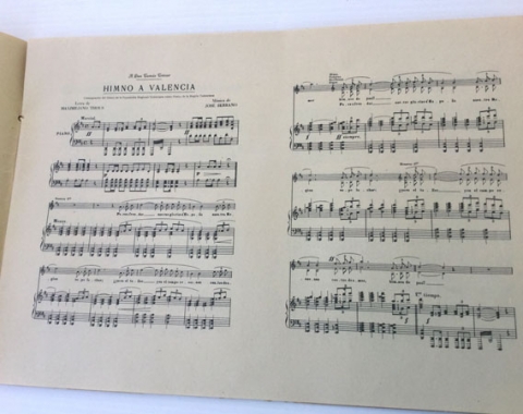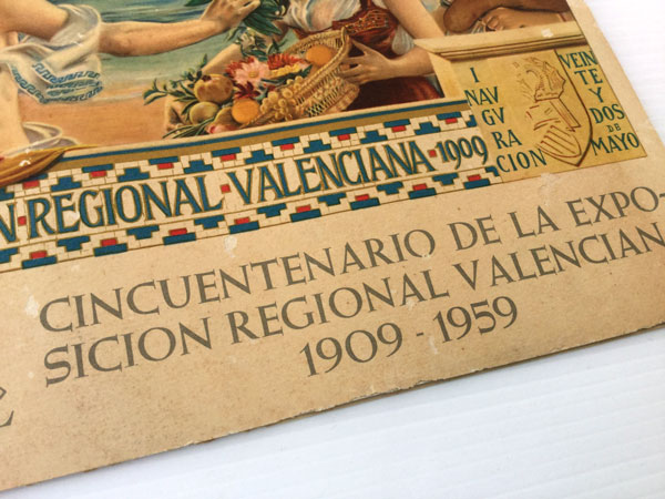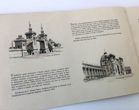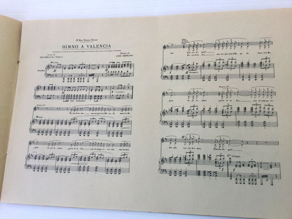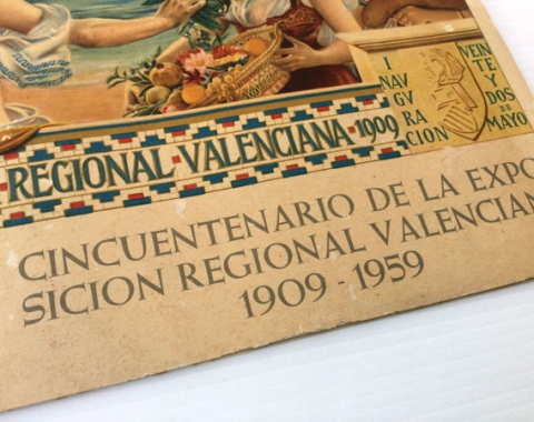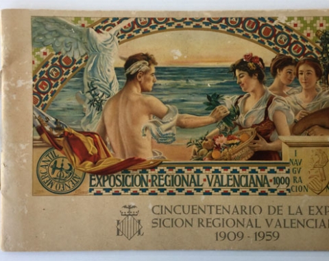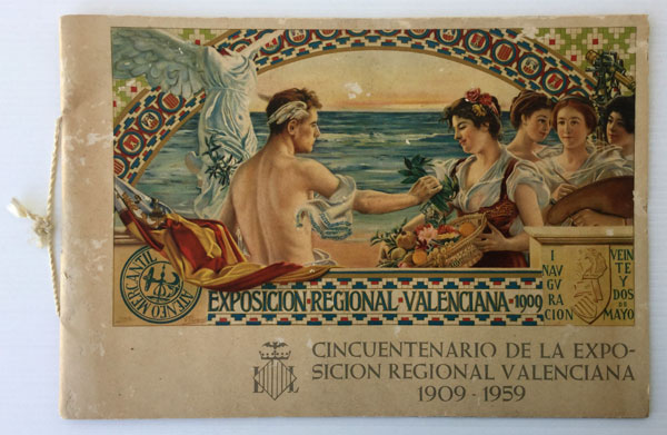 Programa de actos conmemorativos del Cincuentenario de la Exposición Regional Valenciana 1909 – 1959. Contiene el Himno a valencia en partitura y la letra en valenciano y en castellano. Hay unas ilustraciones con información de los monumentos más importantes de la ciudad. Tiene la contraportada un poco de signos de haber sufrido polillas, pero en general está bastante bien.