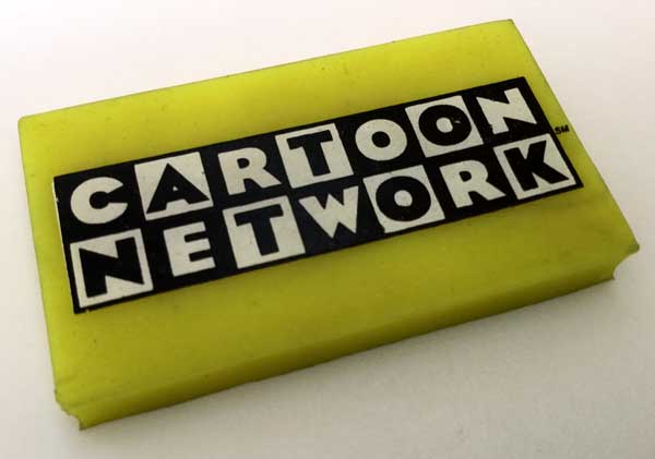 Regla de los dibujos de Cartoon Network. Es de plástico duro. Medidas en inches, centímetros y milímetros. Años 90. Goma de borrar de cartoon Network, mide 5x3cm. En buen estado.