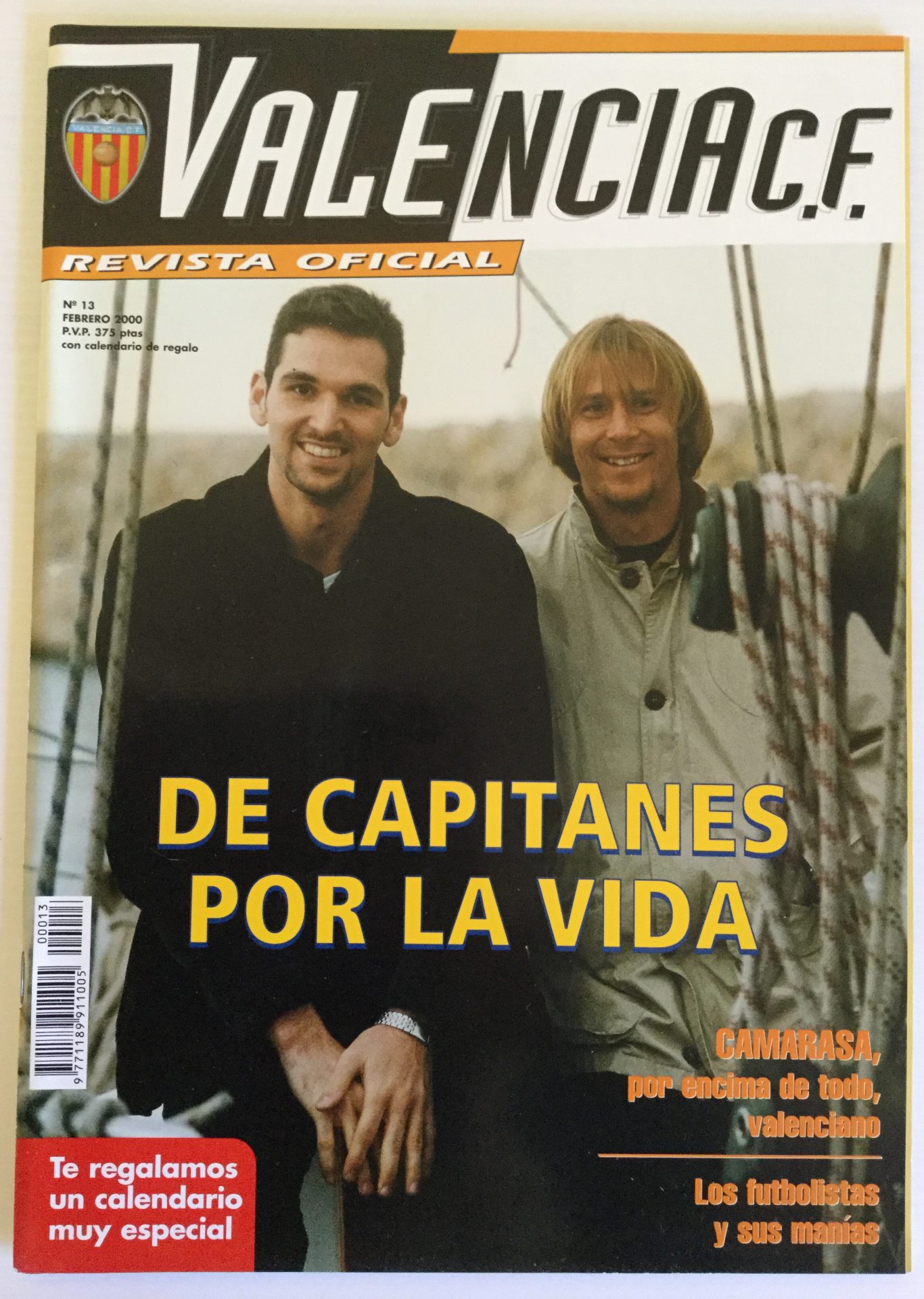 Revista Oficial Valencia CF Número 13, Febrero 2000. Está en muy buen estado. Con el capitán Mendieta y otro jugador en portada.