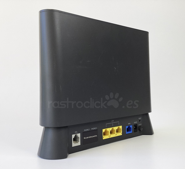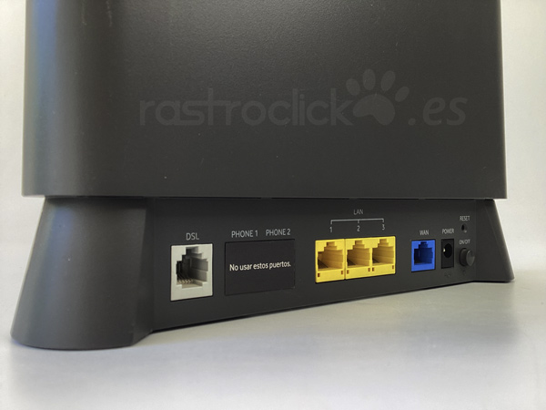 - Puertos LAN: 3 puertos Gigabit Ethernet (amarillos) para conectar equipos por cable a máxima velocidad.