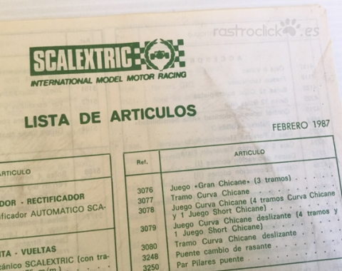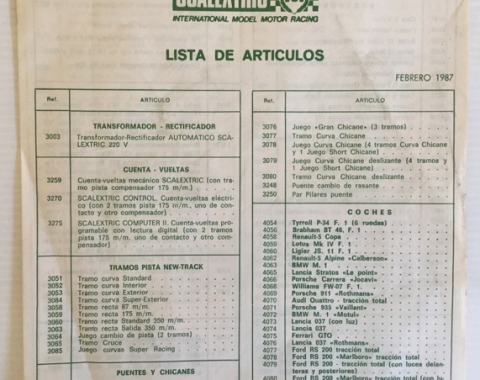 Scalextric Lista de artículos – Febrero 1987 – Exin – Lines Bros S.A. – Circuitos 1987