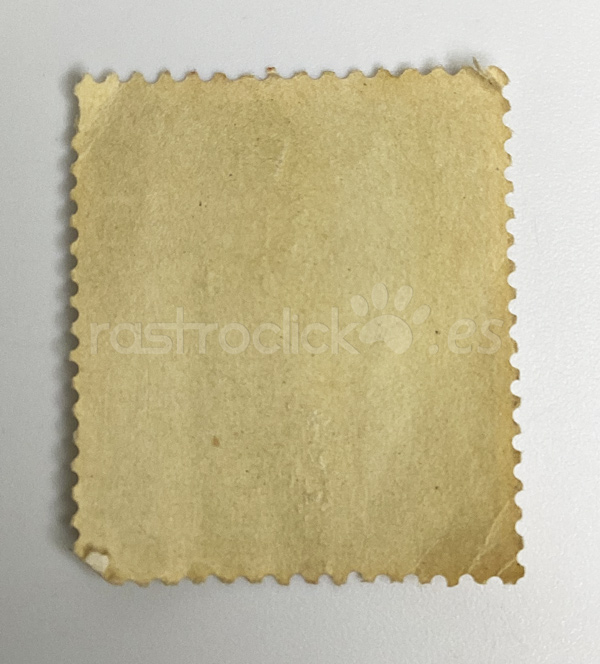 Está matasellado en rojo, Normalmente, estos sellos se cancelaban con el matasellos negro de correos. Las marcas rojas suelen ser de carácter administrativo o de alguna institución específica, posiblemente del Ministerio de Trabajo, lo que le da un toque distintivo.
