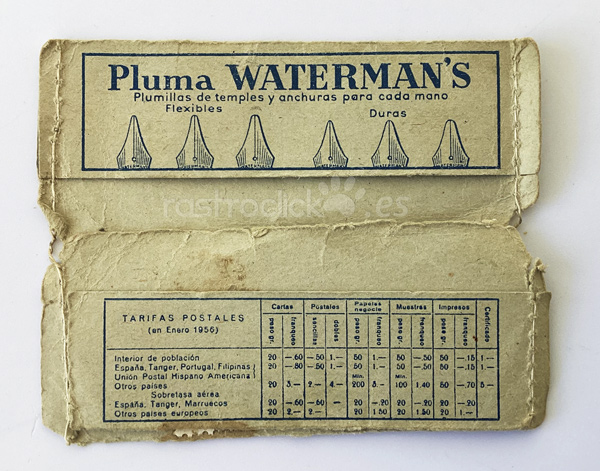Sobre tarifas postales – Pluma y bolígrafo Waterman’s